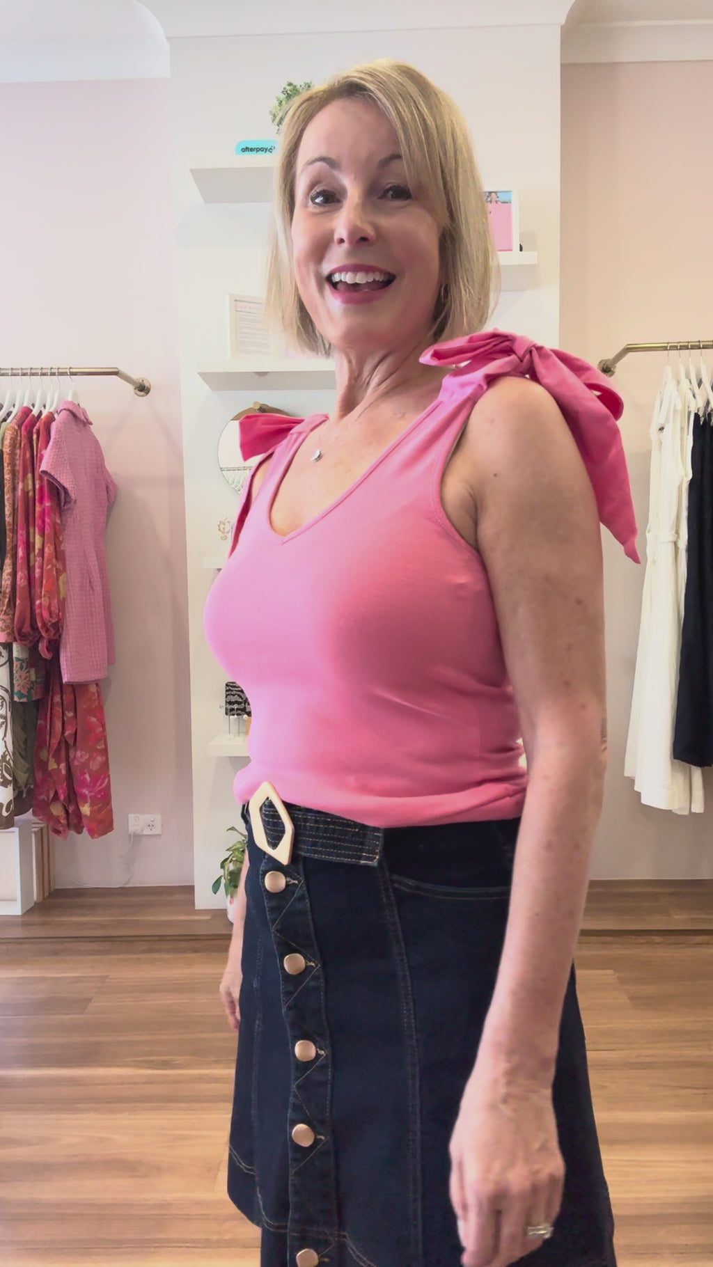 Our Emma Bow Top is a versatile wardrobe staple you'll be wearing repeatedly during Summer. Made from a pink ribbed cotton fabric, this tank has stylish bows on the top which elevates the look. Wear it with shorts, pants or your fave denim.