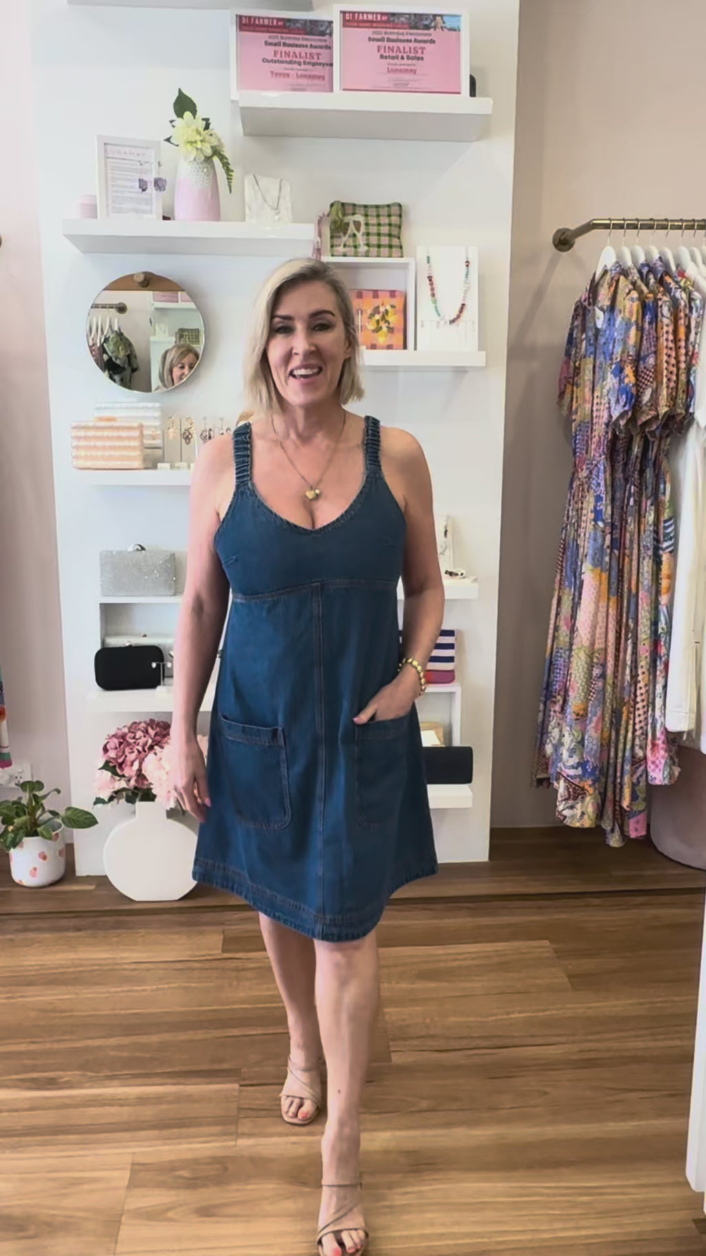 Our Jennie Dress will be a fab new addition to your wardrobe. This denim sun dress is lightweight and comfortable to wear all day and night. Made from a soft fabric in a mid blue wash, it features a fitted bodice, adjustable shoulder straps, a shirred back and a full maxi length skirt. Elevate it with colourful accessories or keep it casual with our Rumer Slides.