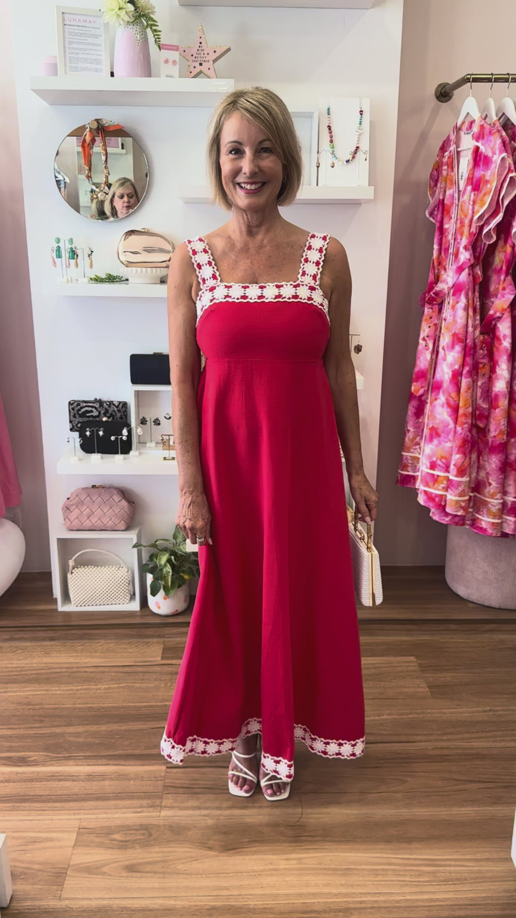 Our Faith Maxi Dress is your answer to versatile, all-season dressing. Crafted from a cotton fabric in a deep red hue, this dress combines understated sophistication with festive vibes. The adjustable straps allow you to find your perfect fit, whilst concealed side pockets add genuine functionality to the elegant silhouette. The beautiful white embroidery details elevate the look and we have no doubt this dress will be a favourite that you will be reaching for again and again. For a night time look, we suggest pairing it with heels and a gold accessories.
