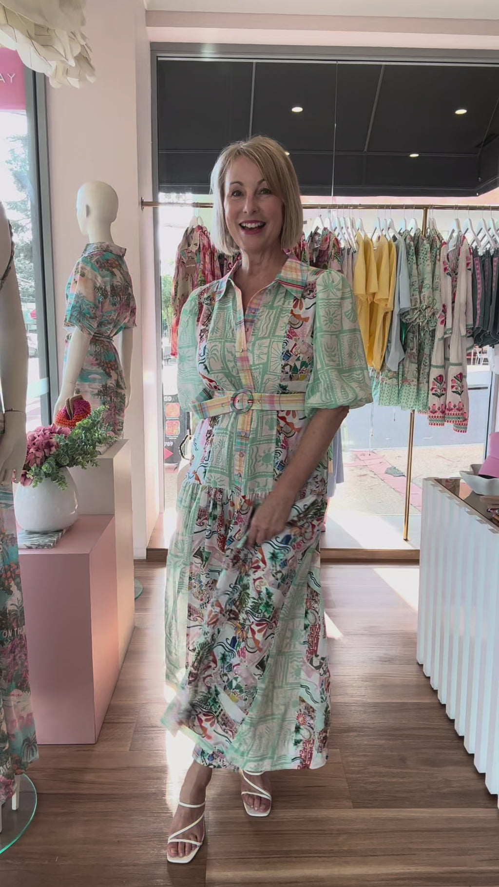 Introducing our Wanda Maxi Dress by Kachel, designed for sunny days and effortlessly stylish escapes. This sleeveless dress is made from a lightweight fabric with an exclusive patchwork 'polaroids' print and it features a button-down front, maxi length skirt and the belt allows you to cinch the waist, creating a flattering and comfortable silhouette. Our Wanda Dress is perfect for garden parties or casual outings, making it a versatile addition to your wardrobe.