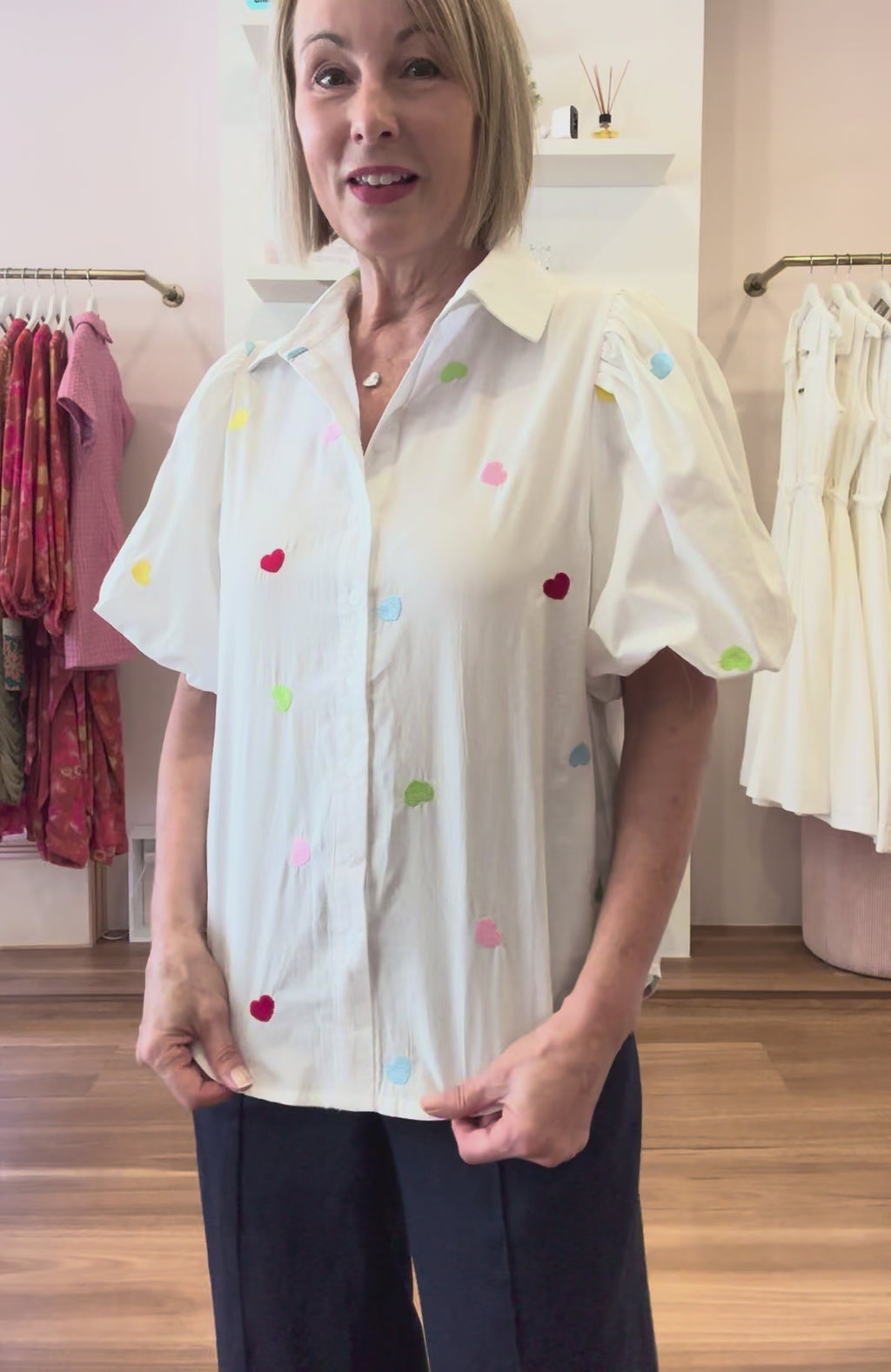 Our Alessia Linen Pants are designed for effortless, everyday wear. Made from a white linen fabric, these pants feature a classic zip and button closure, an elasticated waistband at the back, functional front pockets and they're lined! Wear them with our Love Heart Shirt (pictured) or your favourite tank.