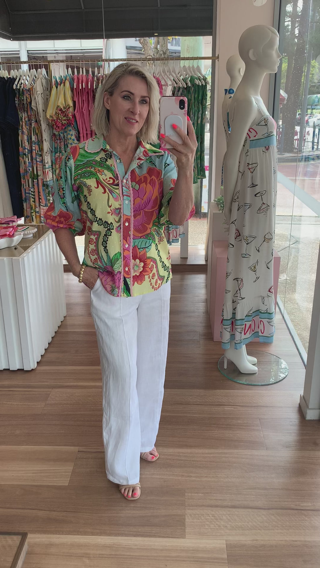 Our St Tropez Shirt is back! Crafted from a lightweight dobby fabric that feels breathable and comfortable all day, this short sleeve shirt features an elegant yellow floral pattern, beautifully enhanced by delicate pink crochet details on the collar, cuffs, and extending along the button front. Perfectly versatile, this floral top transitions seamlessly from the office to casual weekend outings when paired with your favourite jeans or shorts.